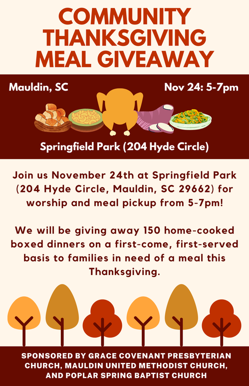 For more information or to find out how you can get involved please contact Carol in the church office by calling 864-288-4728 or filling out the contact form below.