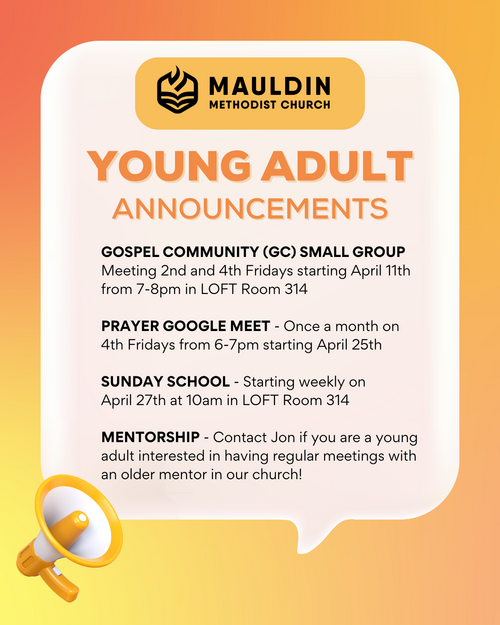 Our young adult ministry here at Mauldin is called "The Bridge" (bridging the gap between adolescence and adulthood) and it is primarily for ages 18 (completed high school) through 25+. There is not a hard age cutoff on the other end, so we can provide a community for those in the stages of early adulthood, where tons of life change and transition happens! Whether you are in school, in the workforce, single, engaged, married, divorced, have little ones, or not, we have a place for you here. For more information, please contact Jon Brooks.